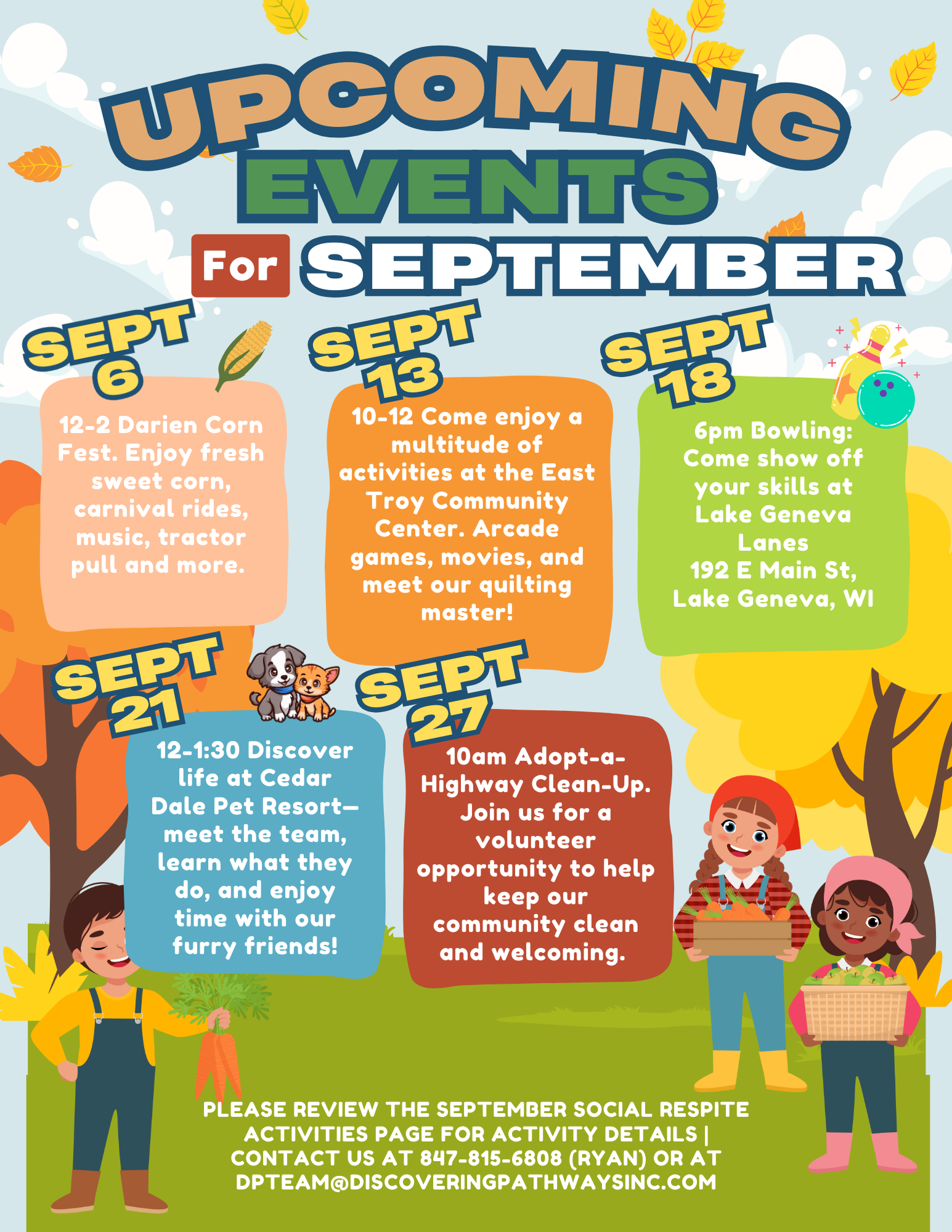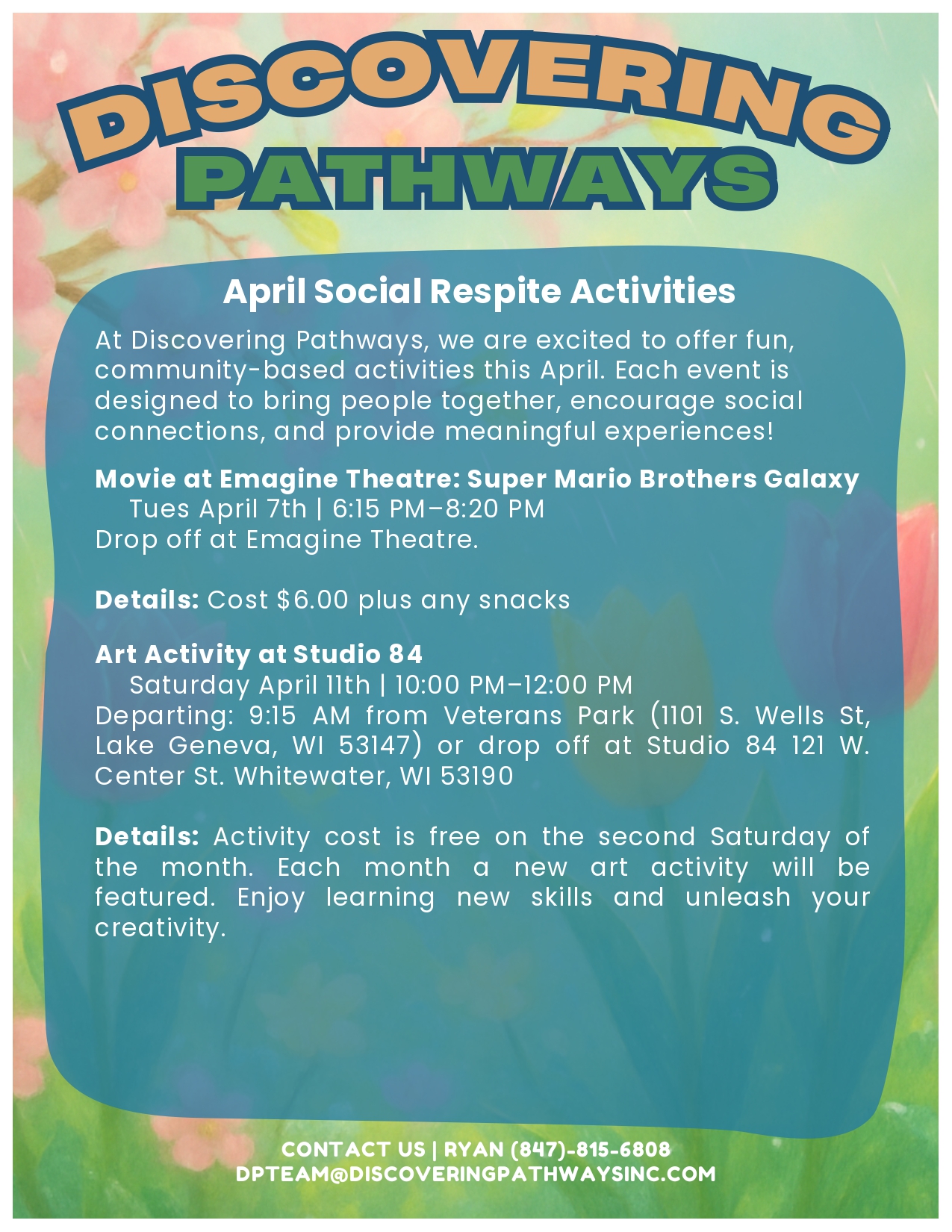 Discovering Pathways provides specialized day services and respite care programs for adults with special needs and disabilities, focusing on creating opportunities, fostering community involvement, and enhancing quality of life through a person-centered approach.